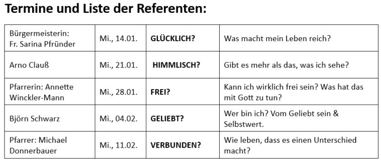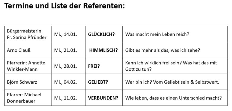 Geplante Referenten, Themen und Termine